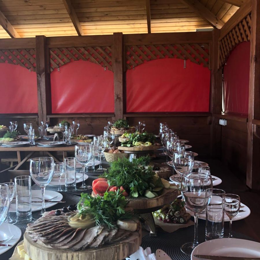 Для проживающих на территории базы работает кухня с разнообразным меню и возможностью заказа комплексного питания