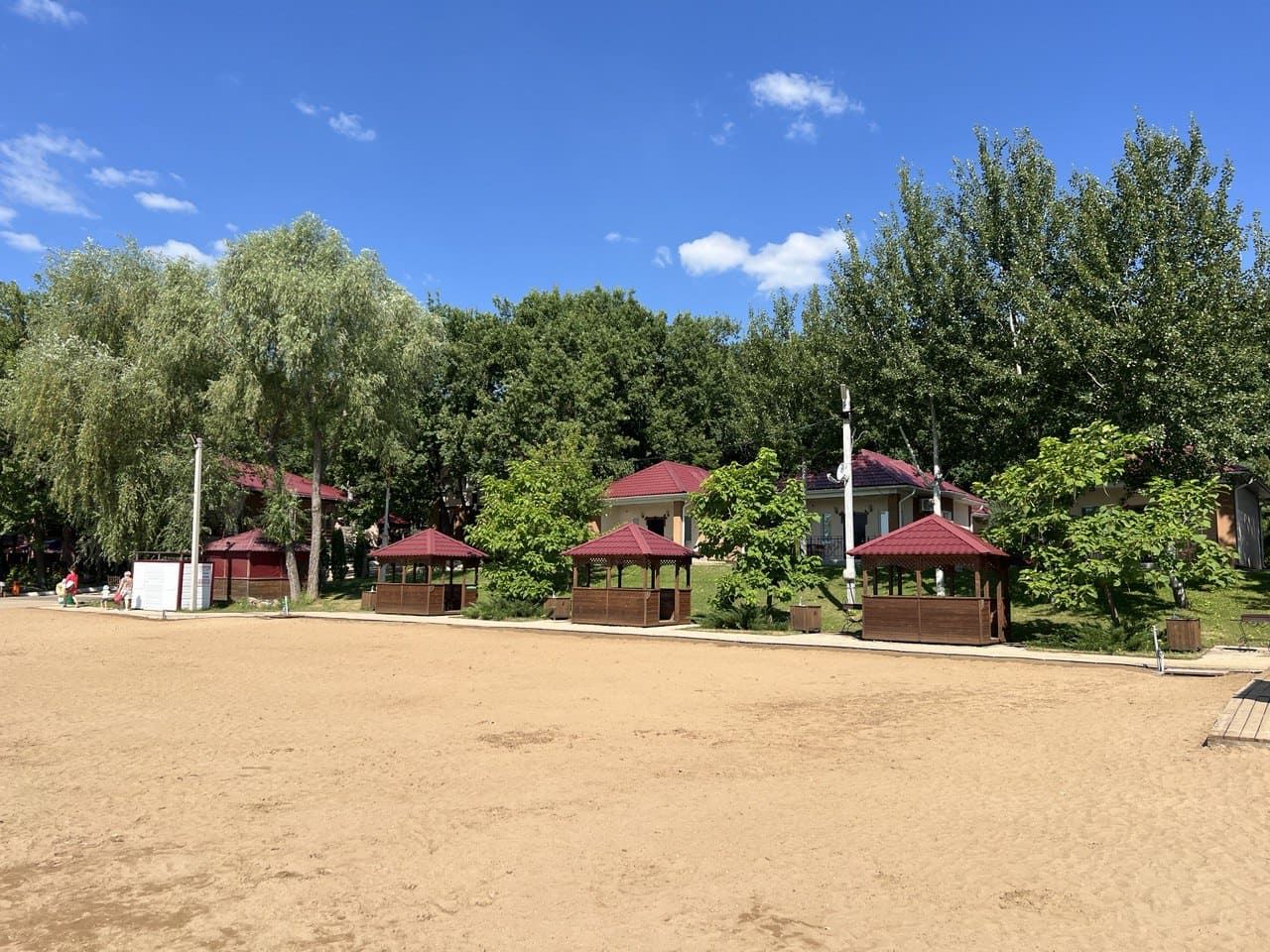 На территории базы: солярий, кафе, бар, зал для проведения конференций, волейбольная и детская площадки, беседки, шашлычные и мангальные площадки, автостоянка.